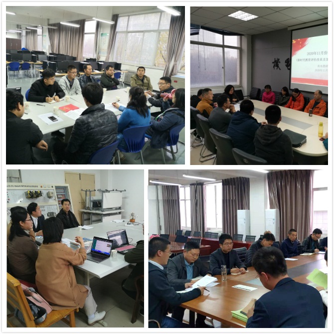 11月12日下午17:00,智能制造学院各教研室开展了以《新时代教育评价改革及加强体育、美育工作》为主题的教研活动,会议分别由机电教研室主任孙永芳、机制教研室主任李会荣、检测教研室主任党威武和数控教研室主任赵小刚等主持,分院院长李俊涛、党总支书记白福民、党总支副书记兼副院长沈博、副院长张晨亮和各教研室专兼职教师参加了教研活动。