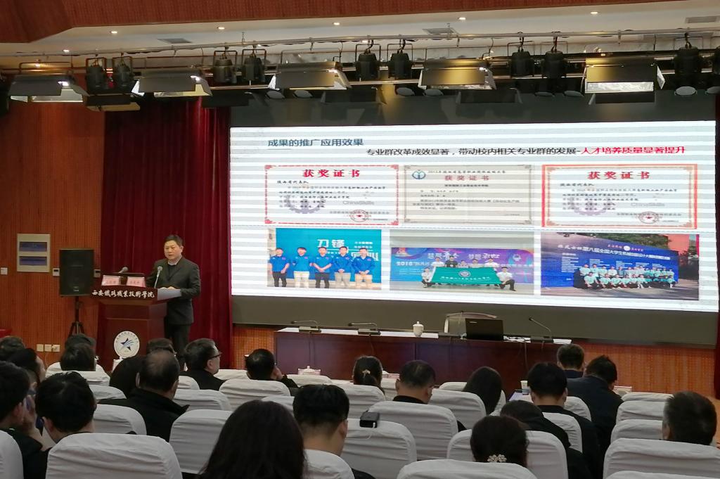 教育教学成果奖是各高职院校的核心竞争力指标,也是“双高”建设的重要绩效指标,本次会议以“教育教学成果奖经验交流”为主题,为全省各高职院校提供了交流的平台。智能制造学院院长李俊涛应邀在大会上作题为“面向智能制造的‘协同平台+产业学院’高职机械制造专业群建设与实践”的交流发言。他从成果介绍、成果解决的教学问题、解决问题的方法、成果的创新点、成果推广应用效果等方面作了阐述,分享了成果的形成过程以及成果凝练的一些经验、做法,交流发言受到兄弟院校的一致好评。