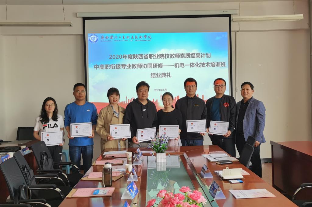 近日,2020年度陕西省职业院校教师素质提高计划(国培项目)中高职衔接专业教师协同研修——机电一体化技术培训班结业典礼在我校举行,智能制造学院院长李俊涛、副书记兼副院长沈博、机电教研室主任孙永芳及来自全省18所高职院校的学员参加了会议,会议由智能制造学院教学科长王新海主持。