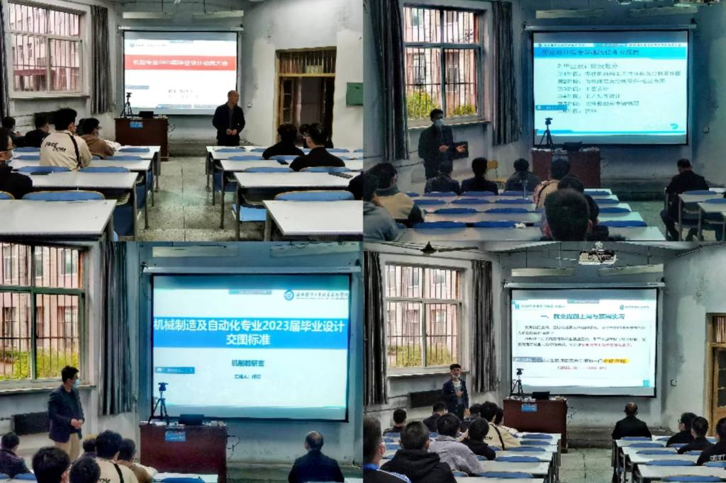 11月10日下午,在南区教二-J12教室智能制造学院采用线上线下相结合的方式,组织开展了2023届机械制造及自动化专业毕业设计动员会。智能制造学院党总支副书记兼副院长沈博,机制教研室全体专兼职教师,2023届机械制造及自动化专业全体学生参加会议。会议由机制教研室主任李会荣主持。