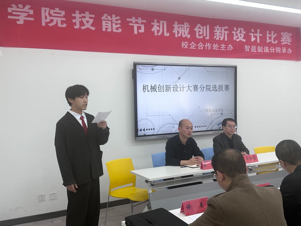 为全面深化创新创业教育,激发学生创新意识和创新思维,结合第十一届全国大学生机械创新大赛主题,2023-2024学年技能节机械创新设计大赛在精艺楼顺利举行。校企合作处处长张俊勇、智能制造学院副书记兼副院长沈博出席大赛开幕式,开幕式会议由机制教研室主任李会荣主持。