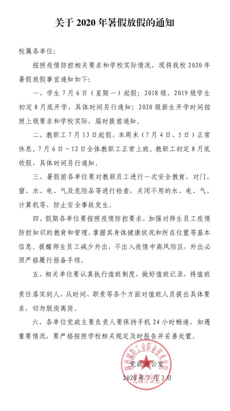 上一条:学校2020年暑假值班安排