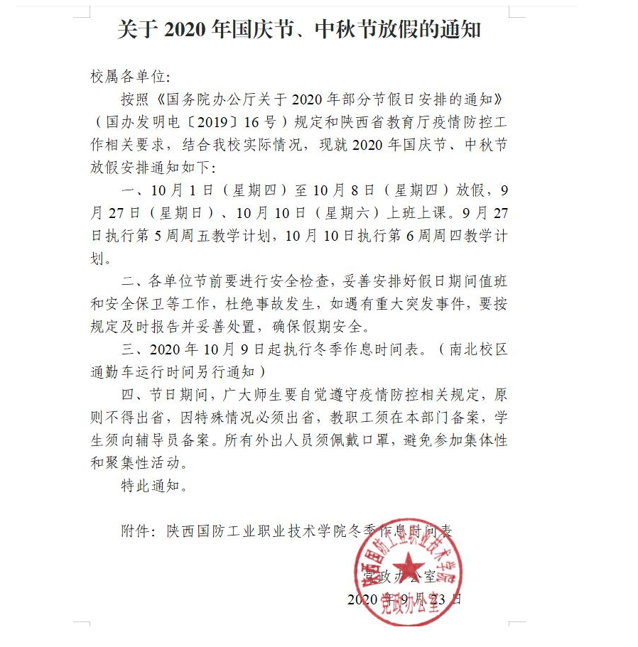 上一条:关于做好2020年国庆节、中秋节放假期间疫情防控工作的通知