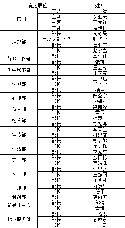 为了进一步加强校学生会学生干部的自我服务、自我管理能力,帮助学生干部树立服务学院师生的意识,培养学生干部的积极性和主动性。根据《18新利苹果客户端学生干部管理规定》、《18新利苹果客户端学生会章程》的组织原则和分院学生会的工作实际,通过民主推荐、竞岗演说的方式,结合学生会后备期间所负责相关事务完成度及个人能力等情况综合考量,现研究决定拟聘王子濠等39名同学为智能制造学院2020届学生会干部。现对拟任命的学生会干部予以任前公示: