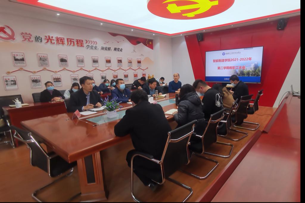 2月26日下午,智能制造学院于10-305组织召开了2021-2022年第二学期全体教职工大会,全体教职工参加会议。会议由智能制造学院副书记兼副院长沈博主持。