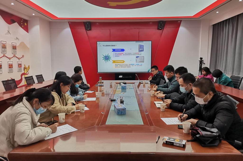 李俊涛对赵岩等一行的到来表示欢迎,介绍了机电一体化技术专业群教材建设的现状和未来发展的目标。赵岩从规划教材建设要求与现状、新形态教材概念、新形态教材常见编写体例、国规教材特色分析等方面做了讲解,重点介绍了活页式教材——《PLC高级应用与人机交互》的编写案例。参会人员围绕规划教材建设流程、新形态教材编写等进行了充分交流。