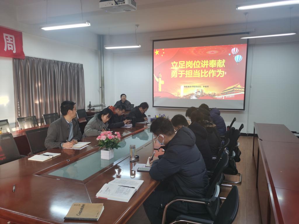 首先,智能制造学院院长兼党总支副书记李俊涛同志围绕党的十九届五中全会精神为全体党员讲授“立足岗位讲奉献,勇于担当比作为”专题党课。李俊涛院长就党的十九届五中全会精神中职业教育改革的内容和方向,做了简要介绍。强调全体党员要坚持以学生为中心,以专业建设为龙头,以校企合作为核心,以提高社会服务水平,服务地方经济建设为重点,以加强和改进党建与思想政治工作为保证,树立争优意识、特色意识,认真做好各项教育教学工作。