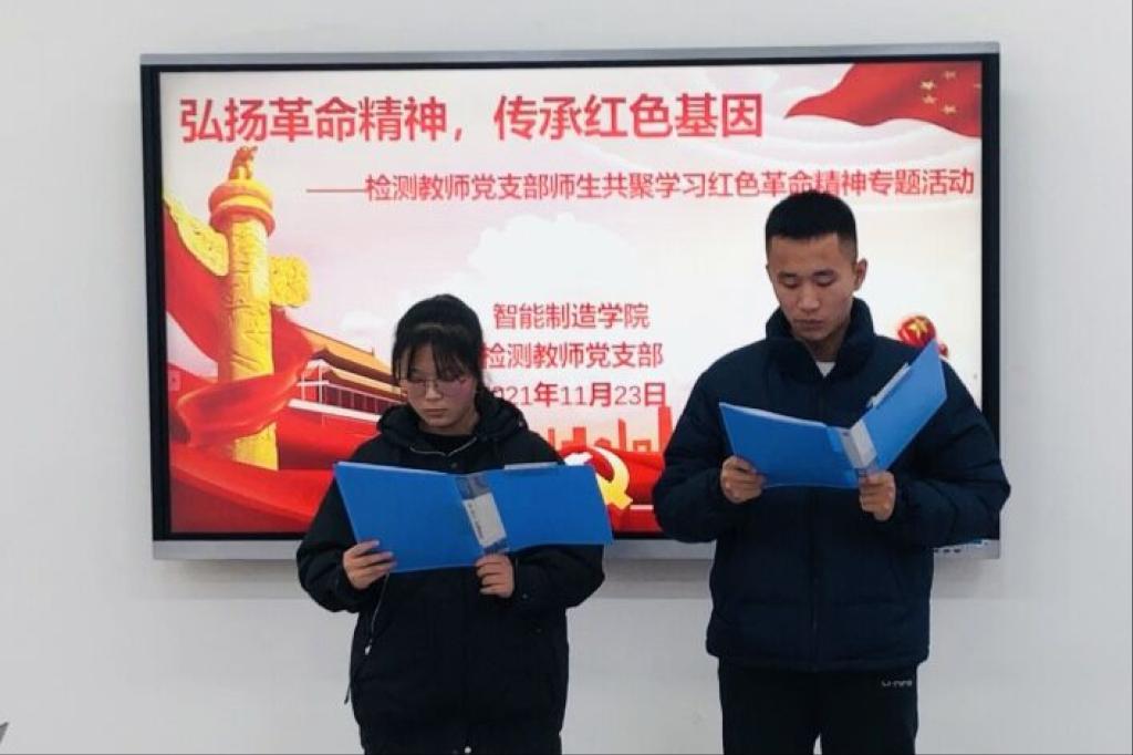 为引导广大党员进一步坚定理想信念,赓续共产党人精神血脉,厚植爱国主义情怀,11月23日下午,智能制造学院党总支在精艺楼创新教育会议室开展师生共聚学习红色革命精神,传承红色基因,赓续红色血脉专题教育活动,智能制造学院党总支书记白福民,质检教研室党支部和学生党支部全体党员参加活动。质检教研室党支部书记党威武主持活动。