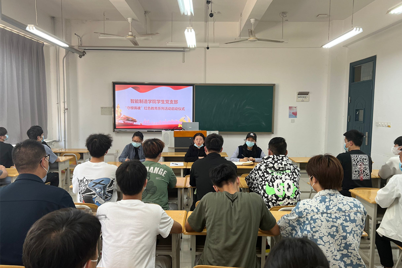 为深入学习贯彻习近平新时代中国特色社会主义思想,喜迎党的二十大,激发广大党员同学奋进新时代的磅礴力量,智能制造学院学生党支部于2022年4月28日下午举办喜迎二十大,奋进新征程“守根铸魂”红色教育系列活动启动仪式。各学生党支部书记及学生党员、预备党员、发展对象、入党积极分子参加启动仪式,启动仪式由第一学生党支部书记樊英鸽主持。
