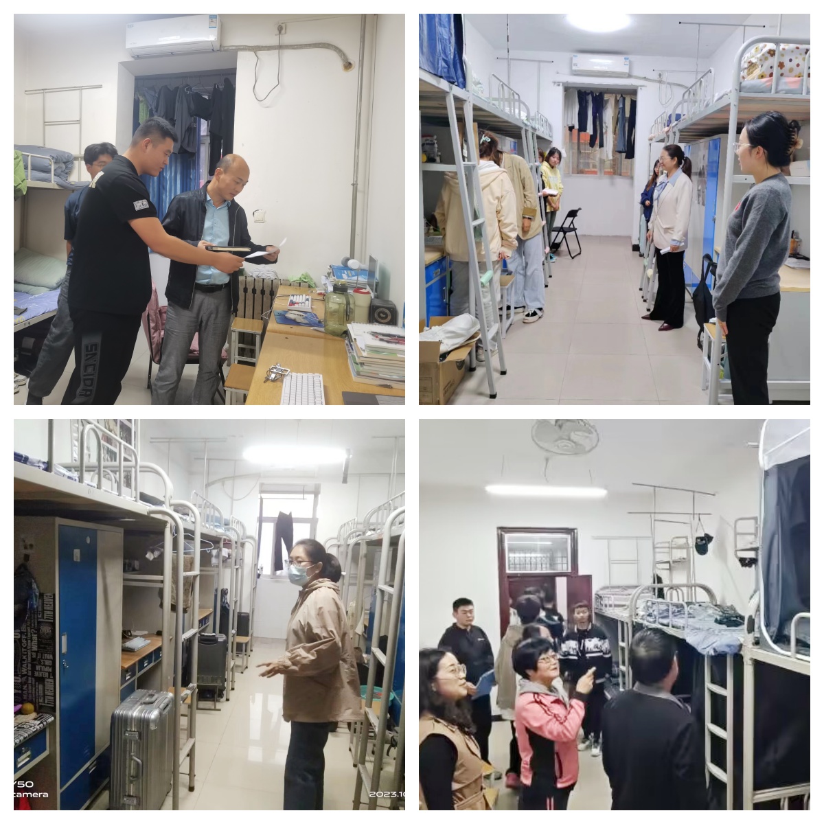随后,沈博带领全体辅导员深入学生宿舍对各年级宿舍进行安全排查。排查期间,辅导员针对宿舍使用违规电器、违规私拉乱接电线、充电后插排未断电等安全隐患进行了重点排查,同时,对宿舍地面、桌面、床面等卫生环境进行了具体指导,督促学生养成良好的生活习惯,自觉保持室内清洁,营造舒适的生活环境。