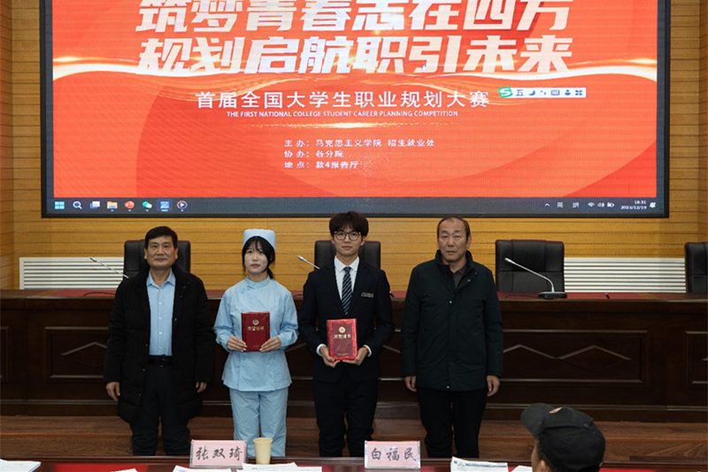 为贯彻落实党中央、国务院关于高校毕业生就业工作的决策部署,加强学生生涯教育和就业指导,增强学生生涯规划意识,近期,首届全国大学生职业规划大赛校级决赛在我校教4报告厅举行。此次比赛分为成长赛道、就业赛道两个赛道。活动开展以来,学校高度重视,精心组织,大力宣传,报名总数达3000余人。经过各院部选拔、复赛,来自8个学院的20名选手脱颖而出,参加了校级决赛。马克思主义学院院长、各分院书记和招就处负责人担任决赛评委,职业生涯规划与就业指导教研室专兼职老师观看了比赛。