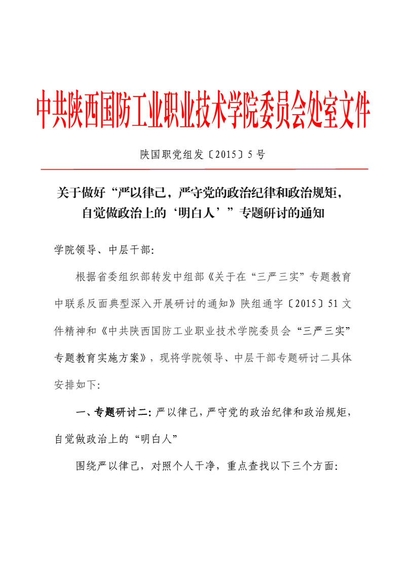 关于“三严三实”专题教育专题研讨二安排的通知