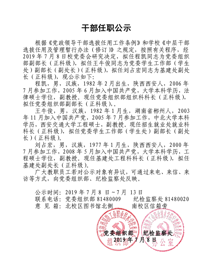 中层干部任职公示