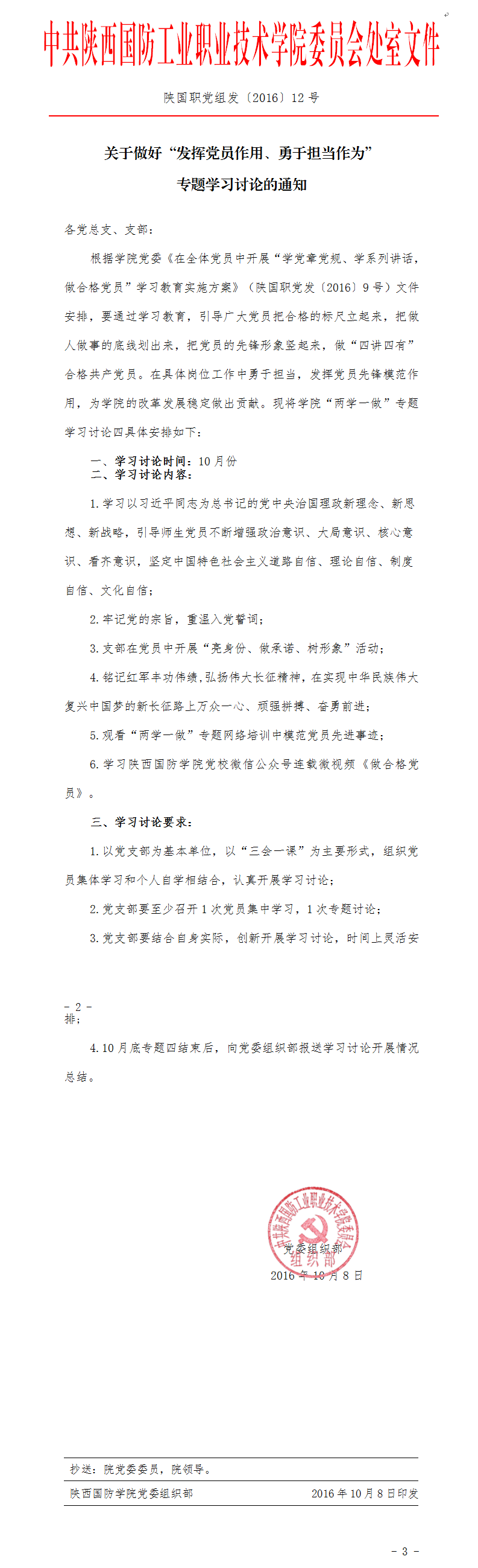 关于做好“发挥党员作用、勇于担当作为”专题学习讨论的通知